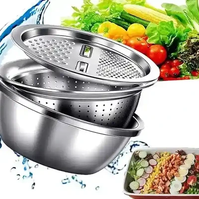 3 In 1 Multifunctional Stainless Steel Basin With Vegetable Cutter + Drain Basket